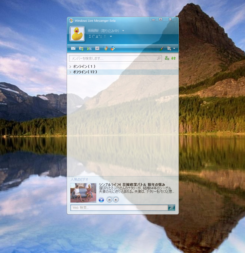 Messenger Plus!Liveはメンバーリストの画面を半透明化することも可能です