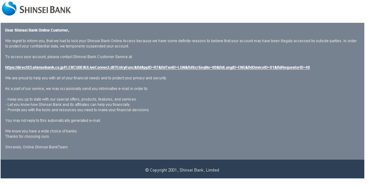 俺も受信できる親のメールアドレスに新生銀行を騙ったメールが来た PR